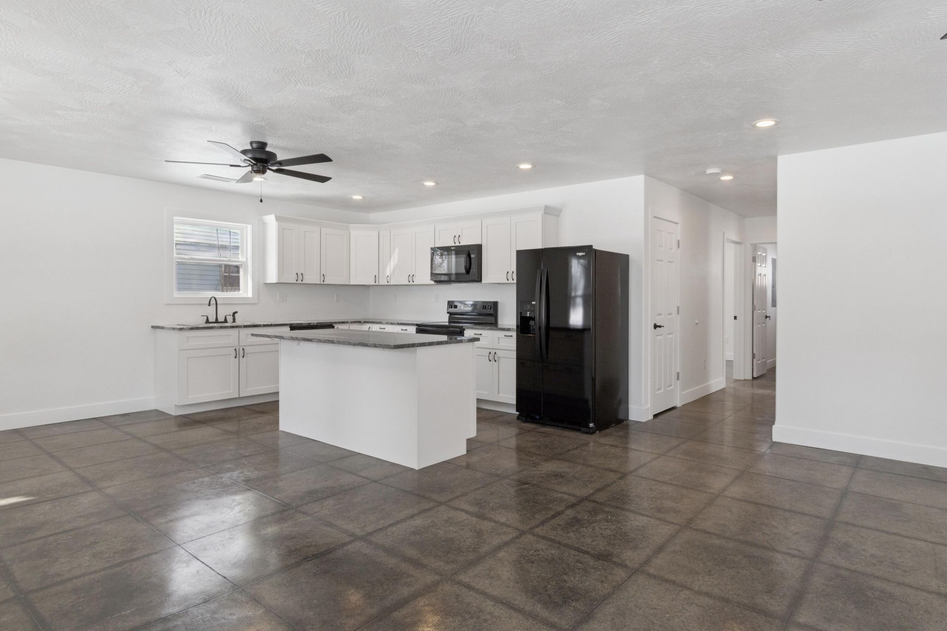 This new, quality-built home in the vibrant town of Lockwood offers an inviting open-concept family room and kitchen, perfect for gatherings with plenty of space and a large island for extra seating, meal prep, and entertaining. Included are brand-new Whirlpool appliances--refrigerator, oven, microwave, and dishwasher. The wheelchair-accessible layout features extra-wide hallways and doors, making it ideal for retirees or busy families. Beautiful stained concrete floors add charm, and the front porch has electricity for holiday décor or projects. The spacious backyard, with alley access, is a bonus. The master suite boasts a tub/shower combo, his-and-hers walk-in closets, and a double vanity with ample space. Love the water? Stockton Lake is just a short drive for fishing, swimming, and boating, or enjoy the local city pool. Lockwood offers both small and national businesses for convenience and job opportunities, plus a public golf course for enthusiasts. With schools, parks, the pool, golf course, and other amenities nearby, even a relaxing walk is easy. This home is ready for its perfect buyer!