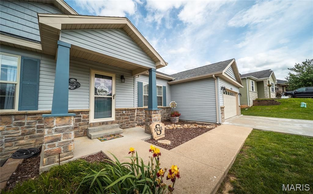 Beautiful 5-bedroom, 3-bath home located in the highly desirable Brush Creek Subdivision, just minutes from Fort Leonard Wood! From the moment you step inside, you'll love the open-concept layout featuring vaulted ceilings and luxury vinyl plank flooring that create a bright, spacious feel throughout the main living area. The kitchen is both functional and stylish, offering stainless steel appliances, a breakfast bar, and seamless flow into the dining area-complete with sliding glass doors that lead out to the back deck, perfect for entertaining or relaxing. The spacious primary suite features a large walk-in closet and a private bathroom with dual vanities, easy-to-use lever faucets, and a glass-enclosed shower. You'll also appreciate the convenience of main-floor laundry. Downstairs, the finished basement expands your living space with a second living area, additional bedrooms and full bathroom, plus plenty of storage options. Step outside to enjoy the backyard with a covered patio and wooded privacy, creating the perfect space to unwind. Don't miss your chance to own this well-maintained home in a prime location-schedule your showing today!