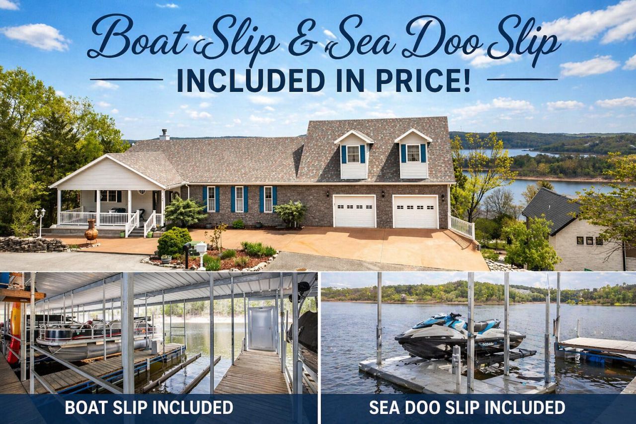 Endless Table Rock Lake views from this spacious, custom-designed hilltop home complete with a boat slip and Sea-Doo slip included. Designed with both comfort and functionality in mind, this 4 bedroom retreat is perfect as a full-time residence or the ultimate lake getaway. The home offers two full living areas, a sunroom or private office with panoramic lake views. With abundant interior storage, this home also includes beautiful cherry cabinetry, two fireplaces, and a large bunk room on the second floor for extra guests. Whether you're entertaining, relaxing, or heading out on the water, this property delivers the perfect blend of space, comfort, and lake living.