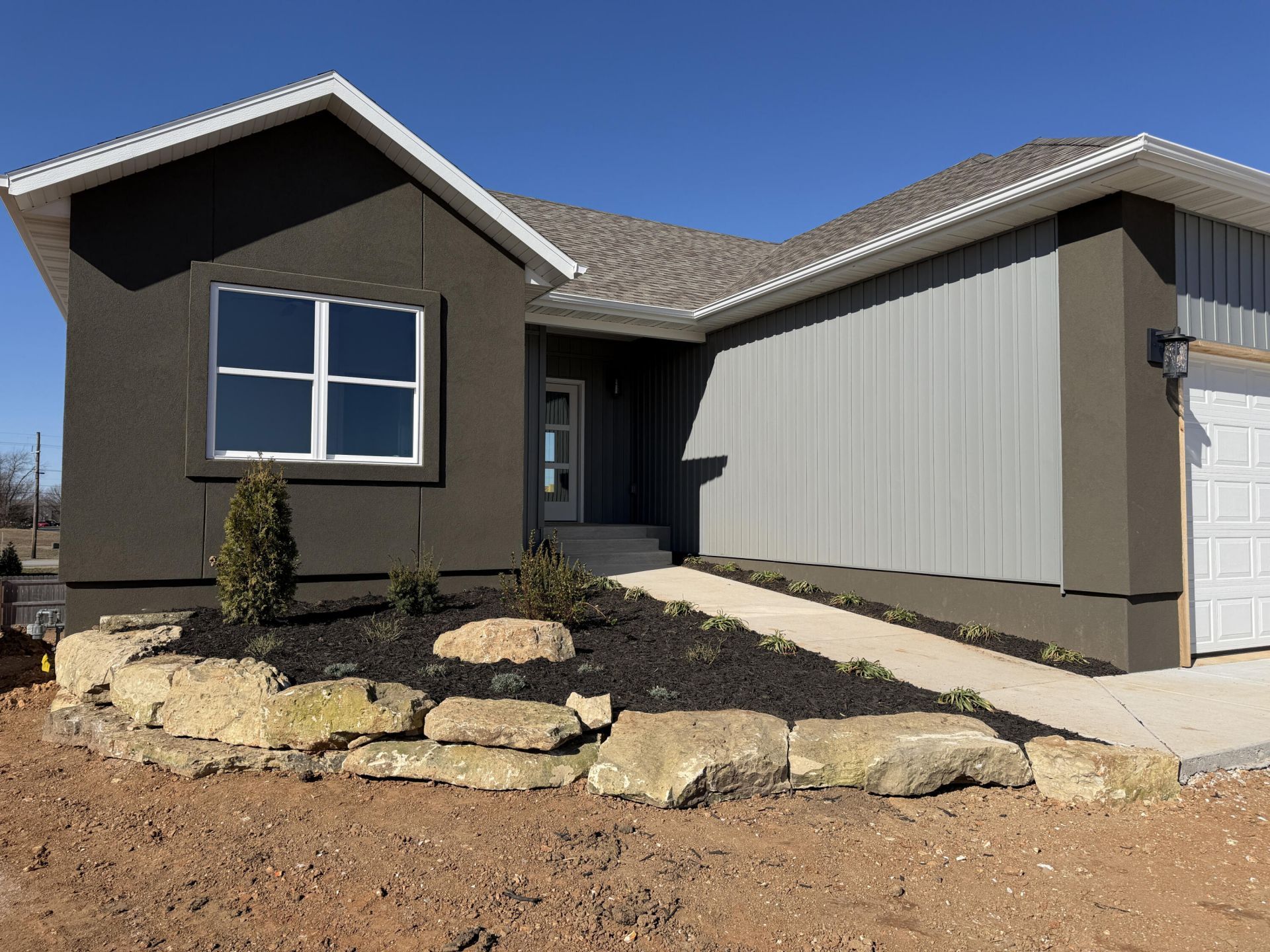 OPEN HOUSE SUNDAY April 26 from 2-4. NEW, super nice, finished walk-out basement with over 3100 finished square feet with all the extras built by Morelock Builders. INGROUND SPRINKLER SYSTEM, 9 foot ceilings throughout the entire home, all interior walls are insulated along with the basement ceiling for the ultimate in sound deadening and temperature control, 5 bedrooms, 3 bathrooms, huge master suite, 3 living areas, gas fireplace, large kitchen island, granite counter tops, walk-in pantry, 1st floor laundry room, mudroom, wet bar in the basement family room, ZONED heating and cooling with 2 HVAC units, huge 12x16 deck and the 3 car garage is over 28 1/2 feet deep and both doors are 8 feet tall so your BIG TRUCKS will fit. Located on quiet cul-de-sac street on the north side of Nixa with easy access to Springfield. This is a great opportunity. You will not find another new, finished walk-out basement home with ALL these amenities at this price. Check it out!