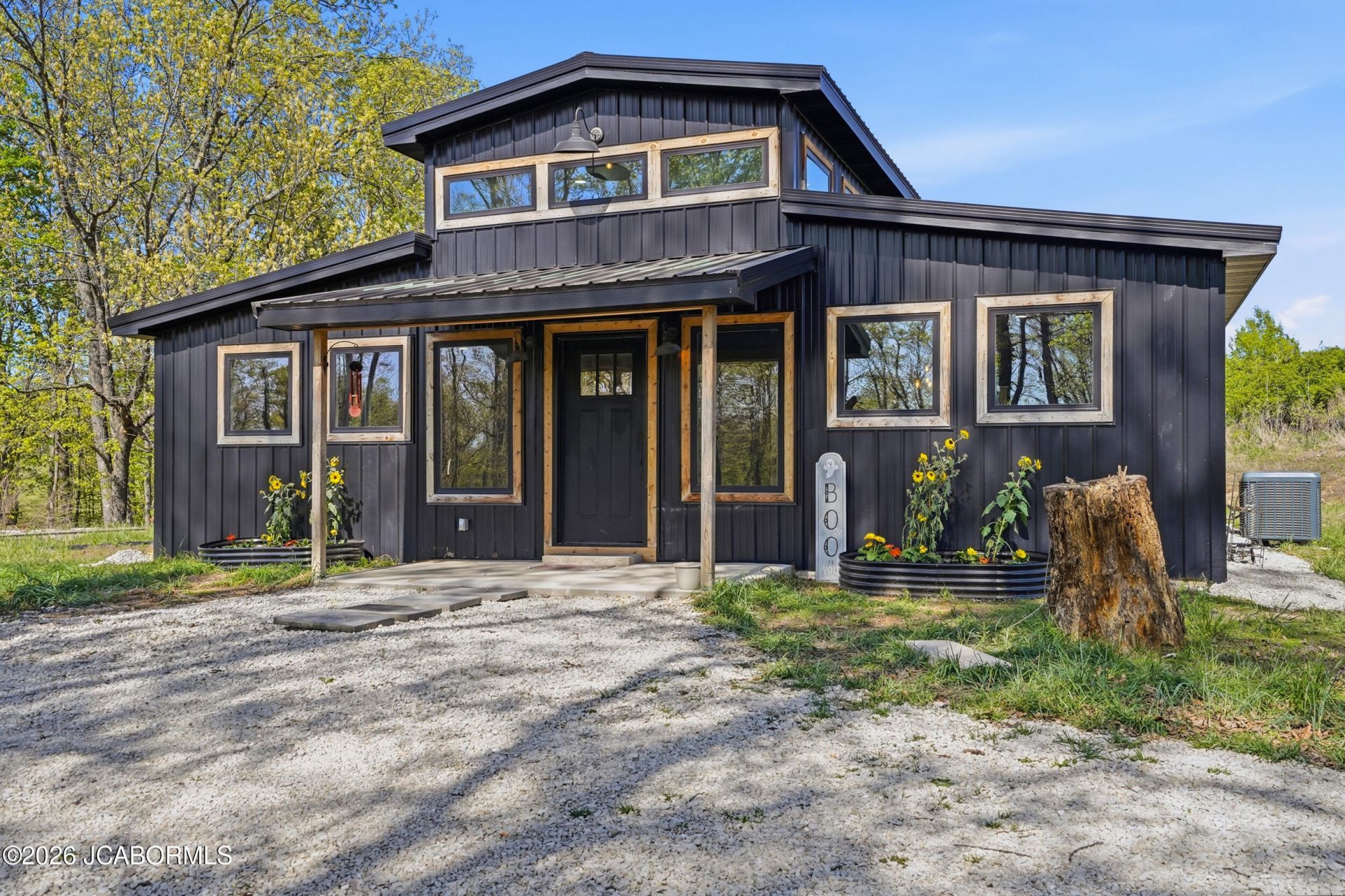 Welcome to 1583 Co Rd 382--a one-of-a-kind Modern Barndominium on 4.53 Acres!Why settle for ordinary when you can own something truly extraordinary? Built in 2024, this stunning custom barndominium is the definition of modern country living -- and it is an absolute must-see in person.From the moment you pull up, the bold dark charcoal board-and-batten exterior with warm wood-framed windows and a striking metal roof makes a statement unlike anything else on the market. Step inside and prepare to be wowed by soaring vaulted ceilings, an abundance of natural light pouring through clerestory windows, and a wide-open floor plan that perfectly blends rustic character with modern sophistication. The showstopping reclaimed wood beam chandelier anchors the kitchen and dining area, setting the tone for the unique, thoughtful design found throughout every room.The kitchen is both functional and full of personality, featuring a farmhouse sink, stainless and black appliances, open shelving, and a custom butcher-block table with seating -- perfect for gathering and entertaining(table and chairs convey with sale). The living room flows seamlessly from the kitchen and dining space, complete with a sleek linear electric fireplace, newly-installed luxury vinyl plank flooring, and enough room to truly spread out and relax.The spacious primary bedroom is a private retreat featuring dramatic ceiling height, its own private French door access to the back patio, and a one-of-a-kind en-suite bathroom with a live-edge wood vanity and a stunning vessel sink -- a true conversation piece. Additional bedrooms are generously sized with ample closet space, and every inch of this home has been finished with care and intentionality.Everything in this home is NEWER. Built in 2024, the well and private waste system were installed the same year, so you can move in with total peace of mind knowing all major systems are fresh and worry-free. The new flooring, fixtures, appliances, and finishes mean zero deferred maintenance, so you can move in and immediately enjoy.Step outside, and the property only gets better. Situated well outside city limits, your 4.53 acres offers the privacy, space, and quiet that is increasingly hard to find in today's market. The fully stocked private pond is a fisherman's dream and serves as the backdrop for the gorgeous outdoor gazebo -- your personal outdoor entertainment venue ready for every season. A cozy fire pit sits right along the pond's edge, making for unforgettable evenings under the stars. The back pati