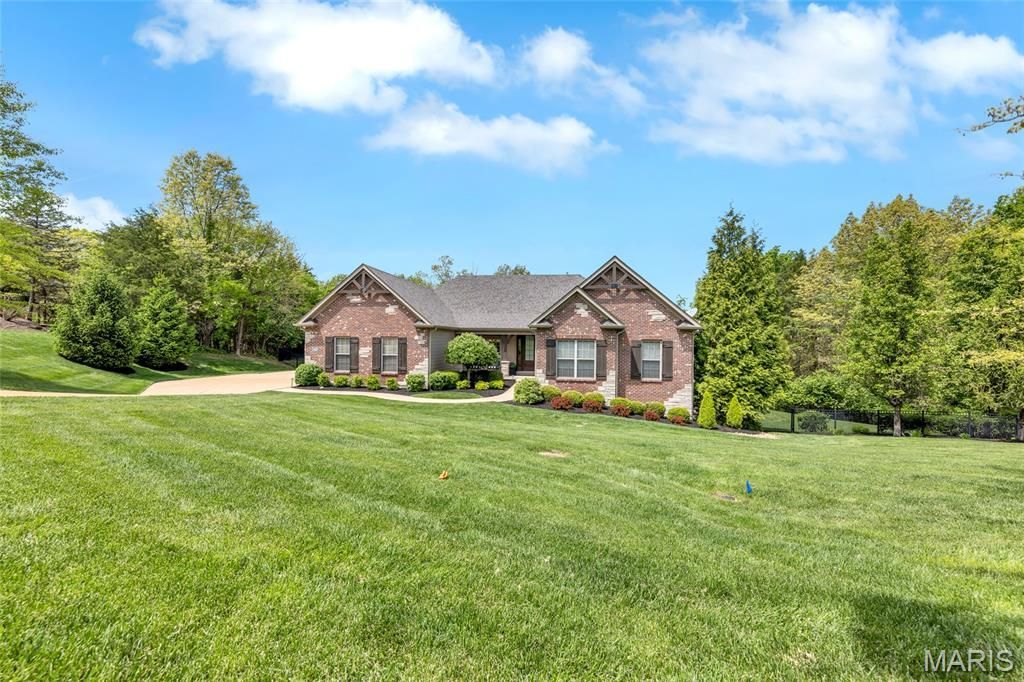 Welcome to 1707 Shepard Road. Experience refined living in this stunning Fischer & Fritchel 4 bedroom, 3.5 bath ranch nestled on 3.09 private acres with 4,000 sq. ft. of beautifully finished living space. From the moment you arrive, the stately curb appeal sets the tone for the thoughtful design within. The foyer features rich hardwoods that expand throughout the home and opens to a formal dining room distinguished by wood beamed columns, while the expansive great room boasts custom entertainment center and built-in speakers and abundant natural light flowing through the vast window wall. The open concept chef's kitchen impresses with a generous center island, stainless steel appliances, double wall ovens, stone counters, high end cabinetry and a walk in pantry, seamlessly connecting to the breakfast room with deck access, and a warm hearth room anchored by a stone gas fireplace. The primary suite is a luxe retreat with spacious, dual walk in closets, double vanities and a substantial, spa like tiled shower. Two additional bedrooms serviced by a full bath, large mudroom with laundry and a powder room complete the main level. The walk out lower level is ideal for entertaining and features a large family room, a full wet bar, as well as a guest bedroom with walk in closet, full bath, home gym area and ample unfinished space for storage or additional expansion. Enjoy the secluded, tree lined backyard while relaxing on the platform deck or lower patio area. An oversized, side entry 3 car garage, pristine landscaping, partially fenced yard and lawn irrigation completes this exceptional home. With upscale finishes throughout and every detail carefully considered, this meticulous residence offers comfort, luxury and location. Fabulous opportunity within the award winning Rockwood School District.