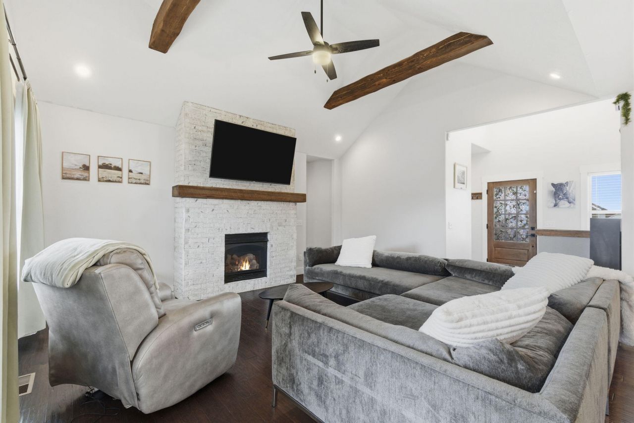 Enjoy this custom-built home in Olde World Estates, thoughtfully designed with high-end finishes throughout sitting on nearly a quarter acre lot. From the moment you enter, you'll notice the elevated craftsmanship, including the rare luxury of three fireplaces that add warmth and character across the home. The living room impresses with cathedral ceilings, wood beams, a white brick fireplace, and a clean lines. The kitchen blends beauty and function with custom floor-to-ceiling cabinetry, natural wood accents, stainless steel appliances, granite countertops, and two built-in pantries. An extended dining area easily accommodates large gatherings, complemented by a built-in buffet with floating shelves.The primary suite offers a true retreat with a spa-like bathroom featuring a soaking tub, walk-in shower, dual vanities, and walk-in closet. The bedroom is equally inviting with wood floors, a designer accent wall, and its own custom fireplace. A nice split floor plan with two additional main-level bedrooms, a full bath, half bath, and a convenient laundry room off the garage with drop zone complete the main floor.The finished basement is ideal for entertaining, featuring herringbone luxury vinyl flooring, a spacious second living area, a large wet bar, and the third fireplace. You'll also find three good-sized additional bedrooms, another full bath with dual vanities, ample storage, and a safe room.Outside, enjoy a fully fenced backyard with space to play or entertain, a cozy firepit area, and an extended covered deck with stairs leading to the yard. An exterior storage room with a window provides flexible space for tools, hobbies, or pets.This home offers comfort, style, and functionality in a highly sought-after neighborhood at a stellar price. Schedule your private showing today!