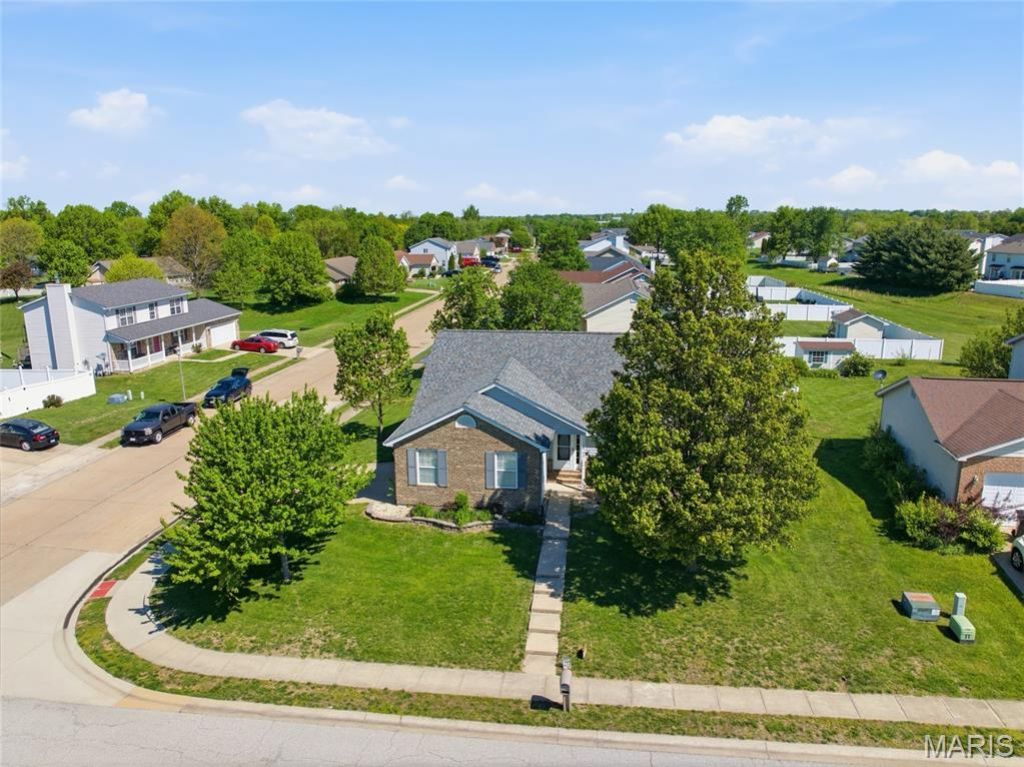 Welcome to this wonderful 3-bedroom, 3-bathroom home perfectly situated on a spacious corner lot in Waterloo! From the moment you step inside, the soaring vaulted ceilings and open, airy feel set the tone for the beauty and thoughtful design found throughout.The inviting main level is designed for both comfortable everyday living and effortless entertaining. The spacious living room impresses with a vaulted ceiling, cozy fireplace, and a stunning open spindle staircase that adds a touch of architectural charm. The well-appointed kitchen is equally impressive, featuring vaulted ceilings, a center island perfect for gathering, a cheerful breakfast area, and ample cabinet storage to keep everything organized and within easy reach.The primary bedroom suite is a true retreat, boasting a vaulted ceiling and a private attached bathroom. Two additional generously sized bedrooms and a second full bathroom complete the main level, providing comfortable accommodations for family and guests alike.Head downstairs to discover the beautifully finished lower level - a versatile and expansive space perfect for a variety of lifestyles. The spacious family room and rec room provide plenty of room for entertaining, movie nights, and game days, while a dedicated office space is ideal for working from home. A third full bathroom and ample storage area round out the lower level.Step outside and enjoy your own private backyard oasis! The fully fenced backyard features a refreshing above ground pool, a patio and deck perfect for outdoor dining and relaxing, and a convenient storage shed - everything you need for fun-filled summer days and evenings spent unwinding outdoors.With its fantastic corner lot location, spacious layout, and incredible outdoor living space, this home truly has it all.