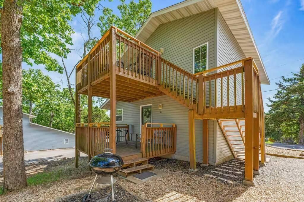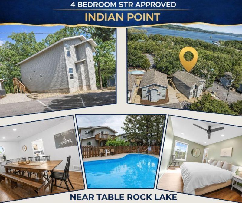 Finally a great 4 bedroom lake home vacation rental investment under $500k! Plus this one has been TOTALLY REMODELED! Brand new cabinets with dovetail drawers and soft close, quartz counters, genuine hardwood oak flooring, fresh paint, new lighting fixtures and new furniture (included). Easy access to amenities - the pool and hot tub are steps away! Super close by is TABLE ROCK LAKE'S INDIAN POINT MARINA, where guests can rent boat slips and boats. Convenient to SILVER DOLLAR CITY, this location, price point and turn key offering makes it a no brainer. The layout is great too with large bedrooms -ALL WITH EN SUITE BATHROOMS and open lower level floorplan. NEARLY $30K IN FUTURE INCOME ON THE BOOKS NOW!