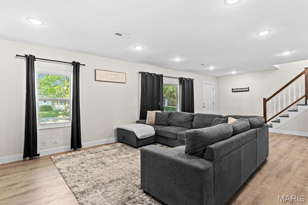 Looking for a spacious 4 bedroom updated home that is conveniently located just down the road from a community park, I64, shopping, and not far from Scott Air Force Base? You've found it here in 5514 Pontiac! The main floor offers a spacious and open living room and kitchen with plenty of cabinet and counter space, island, and all appliances to stay. The three main floor bedrooms also share a full guest bath. The primary bedroom upstairs is oversized and has not one, but THREE closets and one of them being a large walk in right across from the 3/4 primary bath. The main floor also offers a mud room with the laundry area and storage and leads to either the 2 car garage or to the patio and fenced back yard. So much to offer and no carpet to keep clean, all hard surface laminate flooring throughout!