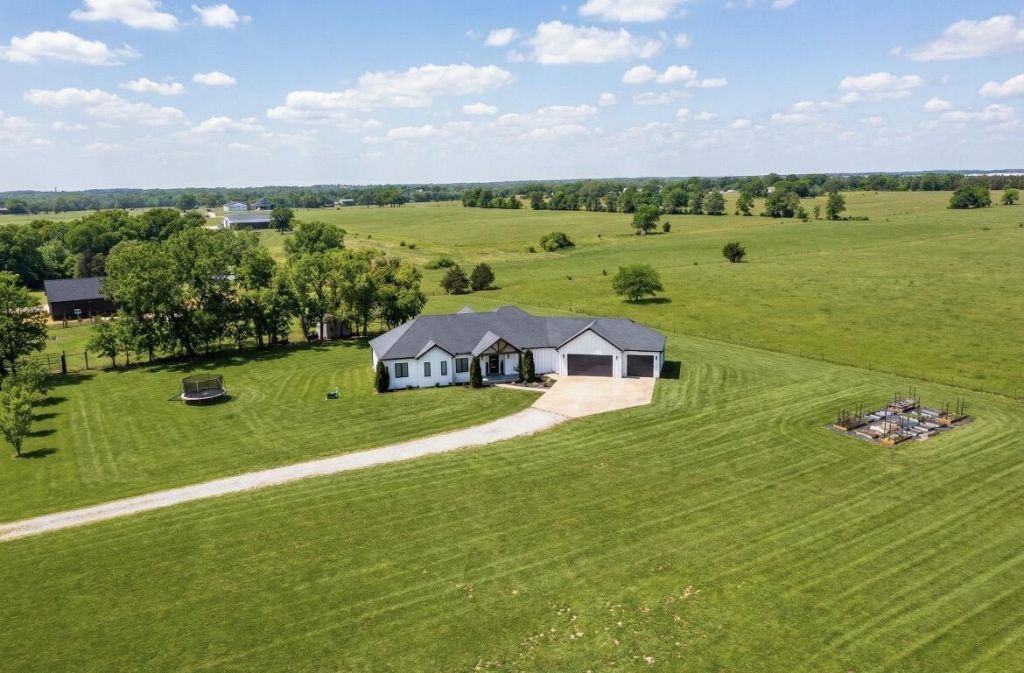 Positioned on the highly desirable east side of Springfield, this private 5-acre retreat offers the perfect balance of convenience and quiet country living--all within the Strafford school district.Built in 2020, this thoughtfully designed single-level home features 4 bedrooms, 2.5 bathrooms, and 2,628 square feet with a true split-bedroom layout. A spacious three-car garage provides ample room for vehicles, storage, or hobbies.At the heart of the home, the open-concept living and kitchen area is designed for both everyday living and effortless entertaining. The kitchen is finished with quartz countertops, engineered hardwood flooring, and a full suite of premium appliances--including the refrigerator, washer, and dryer, all of which convey. A large walk-in pantry offers exceptional storage, while the living room fireplace adds warmth and a comfortable focal point.Step outside and experience the space and privacy that make this property truly special. The partially fenced acreage is ideal for pets, recreation, or small-scale hobby farming. With no subdivision restrictions and 5 usable acres, the property also offers excellent potential for a future shop or outbuilding--providing the flexibility to create a setup tailored to your needs.Properties like this--offering newer construction, usable acreage, shop potential, and immediate access to east Springfield amenities--are increasingly rare. This is a unique opportunity to enjoy the freedom of country living without sacrificing convenience.