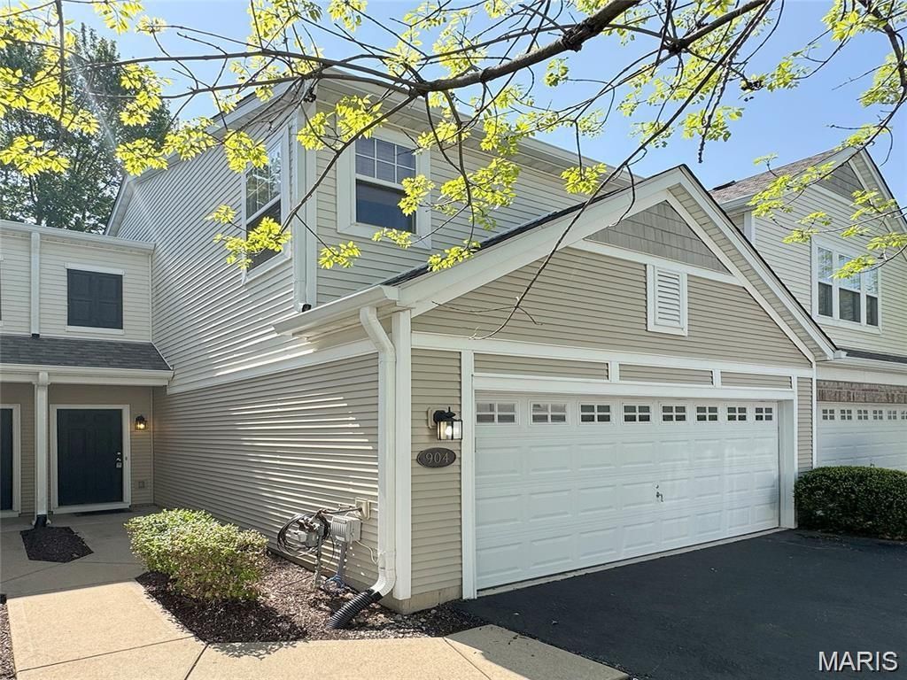 Welcome to this beautiful townhouse offering an exceptional blend of style, comfort, and convenience - complete with a large two-car garage. Thoughtfully updated and impeccably maintained, this move-in ready home showcases a desirable open-concept design enhanced by rich hardwood flooring throughout the main level and BRAND NEW CARPET upstairs. The kitchen is both elegant and functional, featuring crown molding, granite countertops, a center island accented by a hanging culinary rack, and abundant cabinet space. The adjoining breakfast room offers to a sliding glass door that leads to a nice patio and peaceful green space. Upstairs, retreat to the spacious primary suite highlighted by a generous walk-in closet and a private bath complete with an oversized vanity with extended counter space, and a separate water closet for added privacy. A second super-sized bedroom also offers its own large walk-in closet. The upper level is thoughtfully finished with a second full bath featuring an extended vanity and tub. Enjoy the convenience of a smart second-floor laundry room! Situated on a quiet no-through street in a peaceful neighborhood, this home offers both tranquility and accessibility. A BRAND NEW ROOF in 2025 adds peace of mind. Enjoy low-maintenance living in a prime location with refined updates throughout. Near highway 70, shopping dining, parks, schools, and everything St Charles has to offer. DON'T MISS THIS ONE!